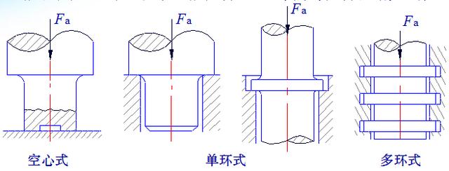 (2)单环式:利用轴颈的环形端面止推,结构简单,润滑方便,广泛用于低速、轻载的场合。