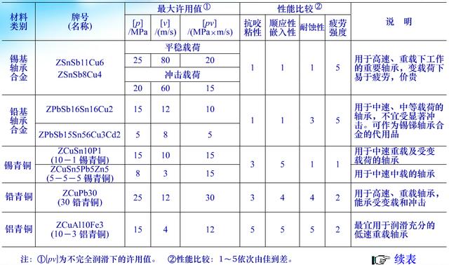 轴承材料是指在轴承结构中直接参与摩擦部分的材料,如轴瓦和轴承衬的材料。轴承材料性能应满足以下要求: