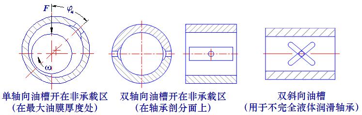 形式:按油槽走向分——沿轴向、绕周向、斜向、螺旋线等。按油槽数量分——单油槽、多油槽等。