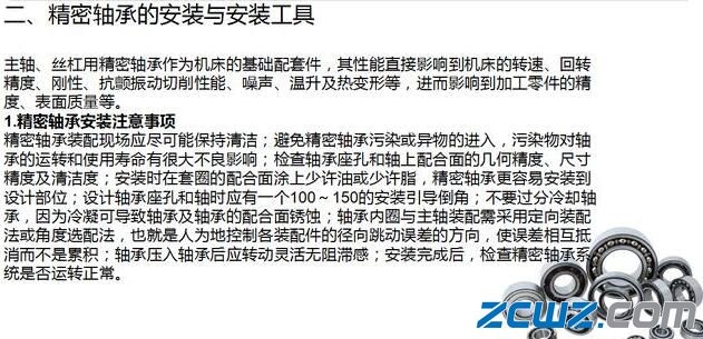精密轴承的装配质量直接影响其工作状态和使用寿命,有不少数控加工中心的故障就是由于轴承的装配不当造成的,所以对精密轴承的装配技术应当给予足够的重视。
