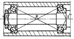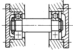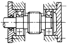 | 在纯径向载荷或轴向载荷较小的联合载荷作用下的轴,一般采用向心轴承组成两端固定支承,并在其中一个支承端使轴承外圈与外壳孔间采用较松的配合,同时在外圈与端盖间留出适当的空隙,以适应轴的受热伸长 | |