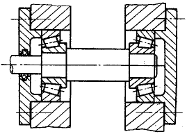 | 受径向和轴向载荷联合作用的轴,多采用角接触轴承面对面或背对背排列组成两端固定支承。可以在安装或检修时,通过调整某个轴承套圈的轴向位置,使轴承达到所要求的游隙或预紧量。特别适用于旋转精度要求高的机械 | |