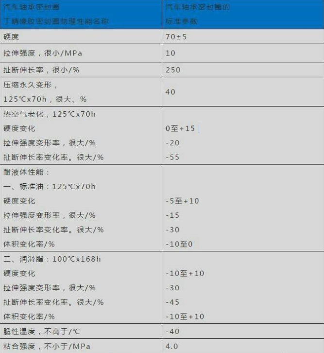 汽车轴承丁晴橡胶密封圈的标准物理性能表: