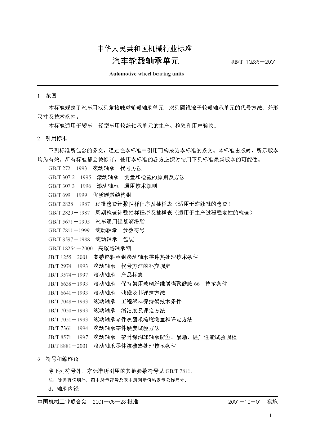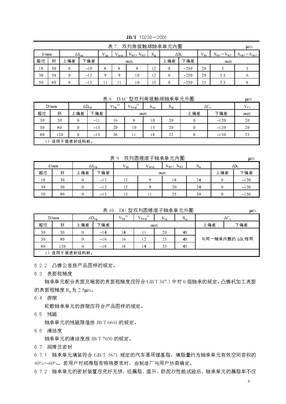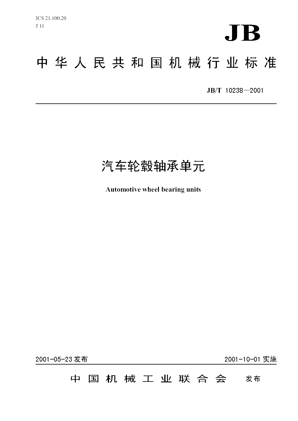 JB/T 10238-2001 汽车轮毂轴承单元