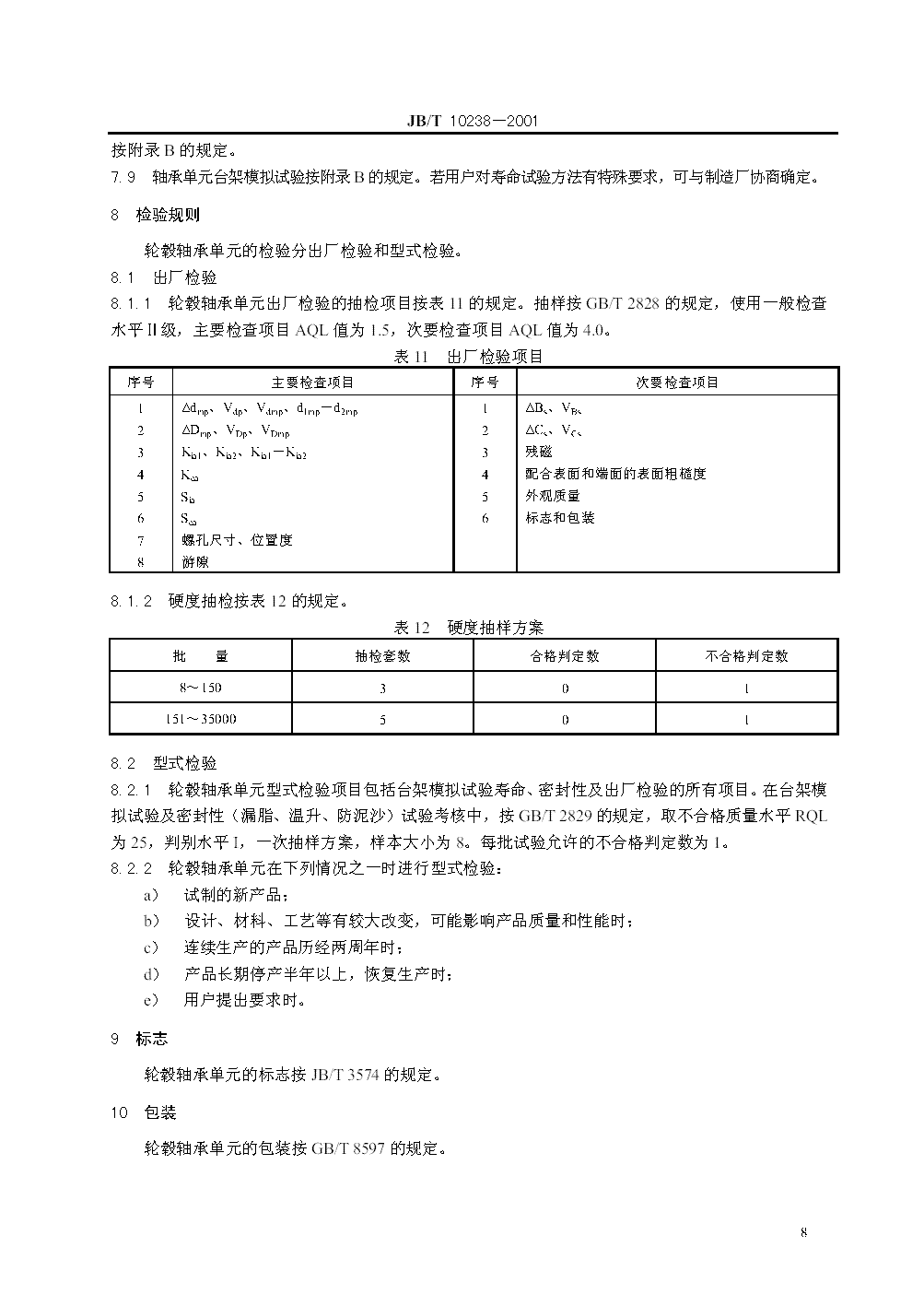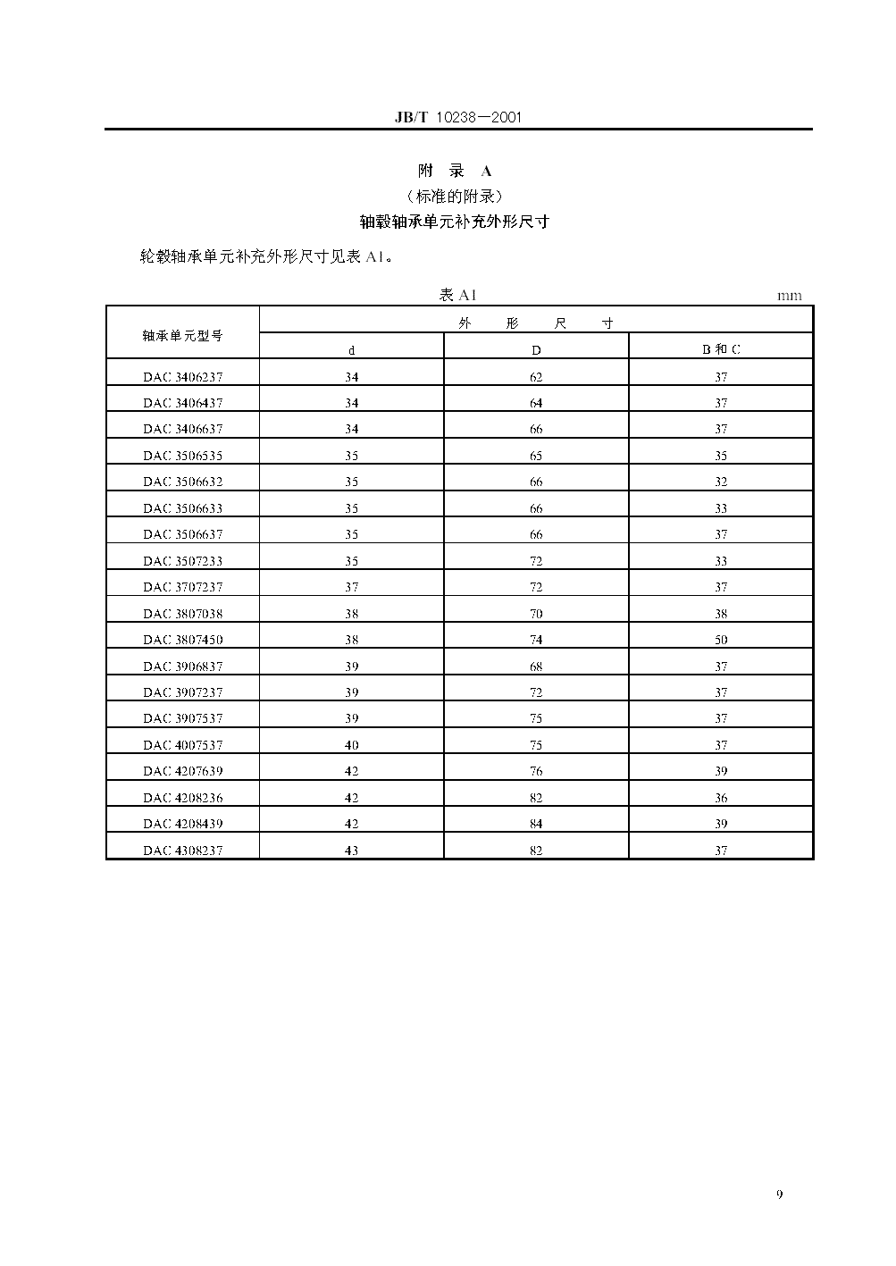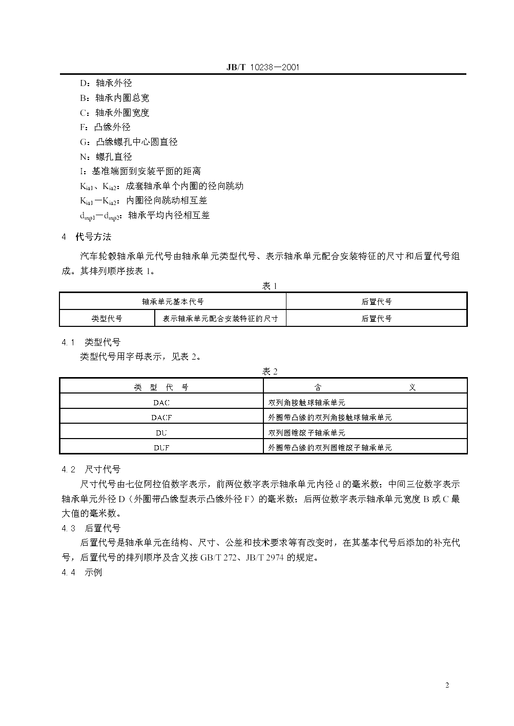 JB/T 10238-2001 汽车轮毂轴承单元