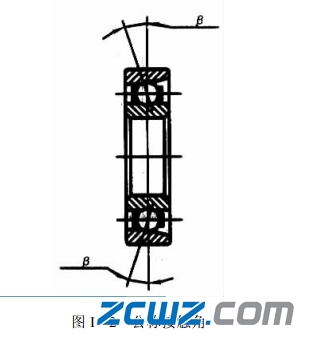 公称接触角—指轴承在正常工作状态下,钢球与内圈和外圈沟道接触点的法线与轴心线的垂直平面之间的夹角称为公称接触角,见图1-2。