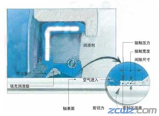 油封的密封机理涉及两个因素,一个是腔体的密封,主要是油封外缘(静态部件)在腔体中的定位;二是密封唇口与旋转轴表面接触的动态密封,这是油封的最重要功能。