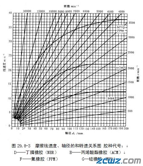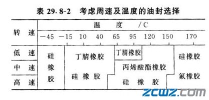 此外,油封还用到骨架材料和弹簧材料。前者常用一般冷压或热轧钢板、钢带,只有海水及腐蚀性介质才用不锈钢板;后者用一般弹簧钢丝、琴钢丝或不锈钢丝等。油封胶种的选择,建议参见图29.8-3。 买轴承,上东明商城 网址:www.dmzcsale.com油封上一篇轴承套定位基准和装夹方式的选择下一篇滚动轴承的组成及各零件的作用相关推荐双唇油封规格尺寸单唇油封规格型号油封有哪些种类及相关作用什么是骨架油封?油封的密封机理原理轴承知识润滑与维护安装与拆卸生产加工轴承材料轴承类型轴承数据轴承资料轴承配套热门标签调心滚子轴承首页产品知识应用联系